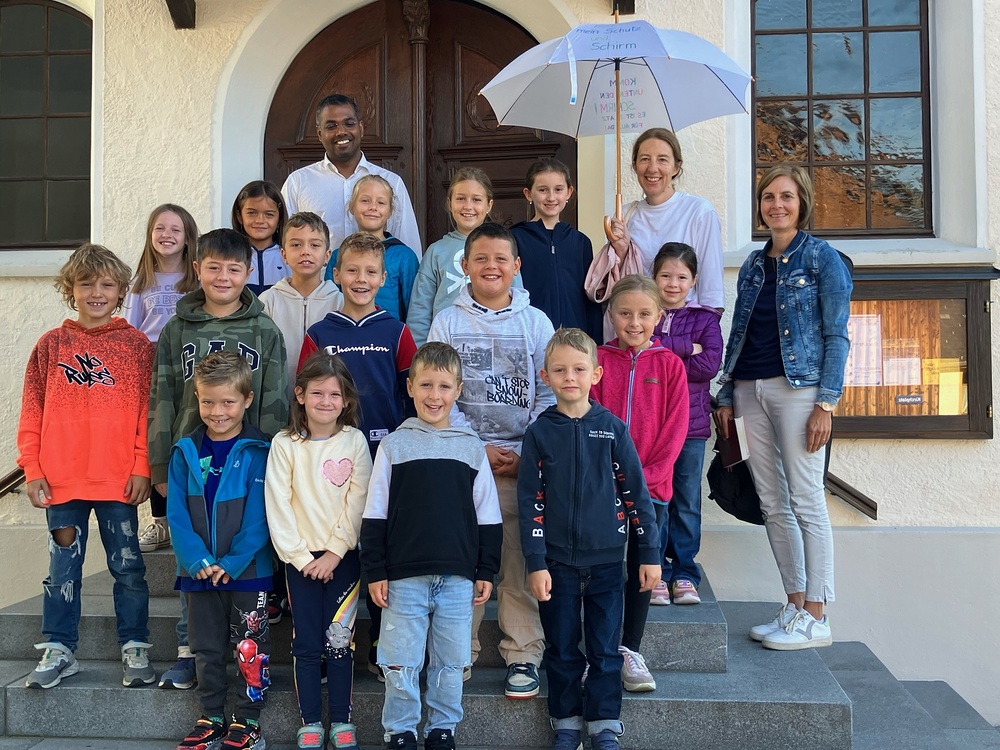 Pfarrer Lojin feierte mit zahlreichen Kindern und Erwachsenen den Erntedankgottesdienst. Sabrina las den Kindern eine Geschichte zum Thema Dankbarkeit vor. Theresia und Otto übernahmen einmal mehr die musikalische Umrahmung.