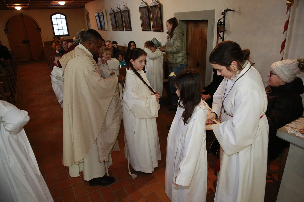 Neun Kinder wurden am Christkönigssonntag in die Ministrantengemeinschaft aufgenommen. Mit Sophia, Anna, Rosa, Linda, Valerie, Adam, Julius, Raphael und Emil freuten sich Pfarrer Lojin und die Rönser Pfarrfamilie.