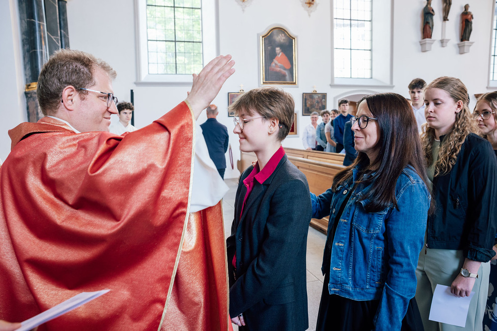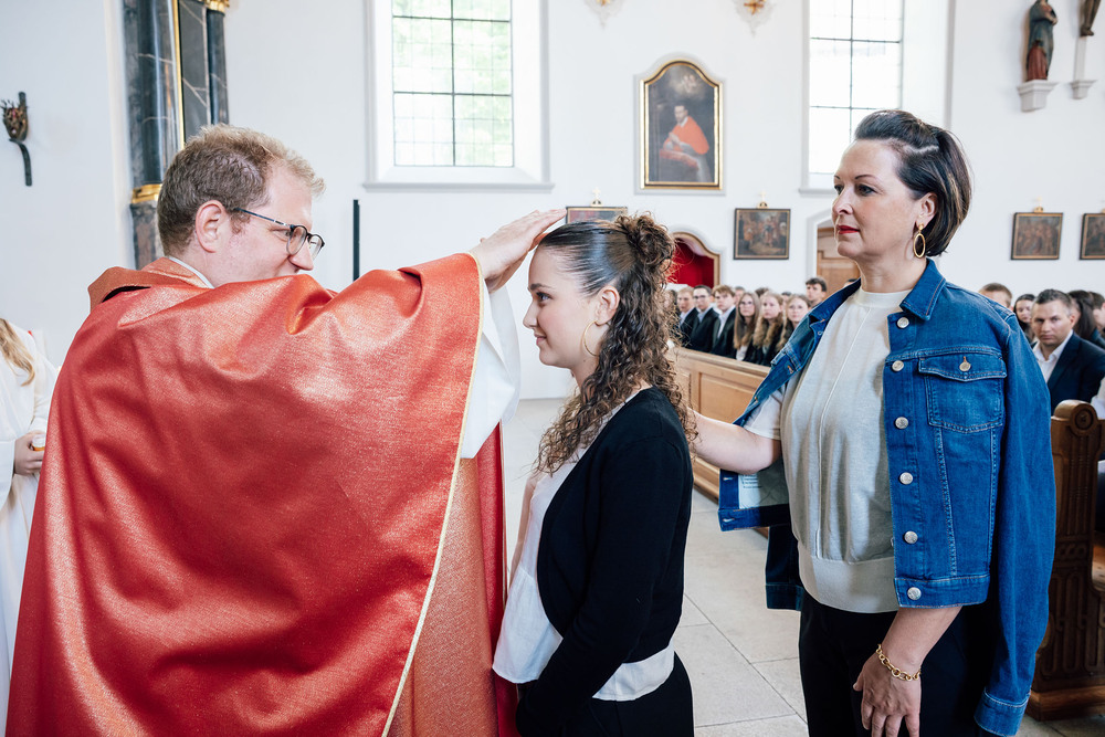 Mathis FotografieSchweizerstrasse 22A-6845 Hohenemsmathis@fotovideo.atUID NR.: ATU 699 20179IBAN: AT93374610000084400BIC, Dietmar Mathis / Hohenems am 25.5.2024 Firmung in der St. Konrad Kirche, Dompfarrer Fabian Jochum spendete das heilige Sakrament der Firmung.